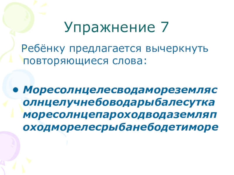 Ребёнку предлагается вычеркнуть повторяющиеся слова: