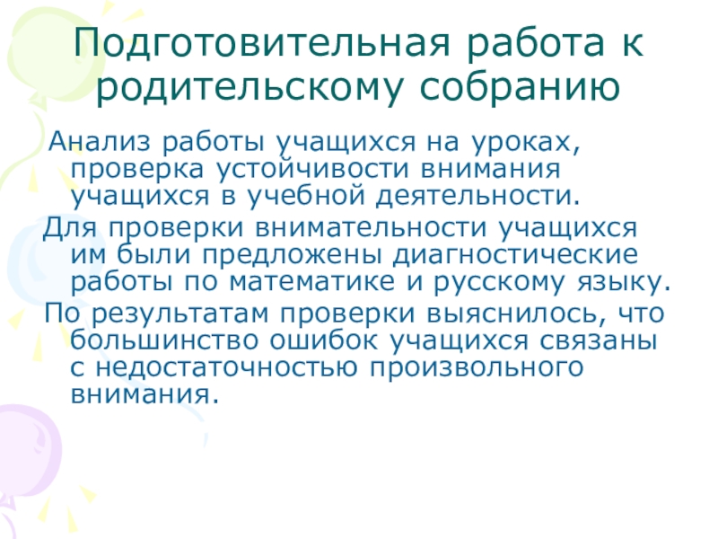 По результатам проверки выяснилось, что большинство ошибок учащихся связаны с недостаточностью произвольного внимания.