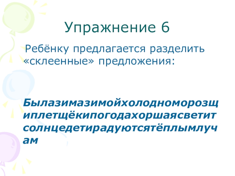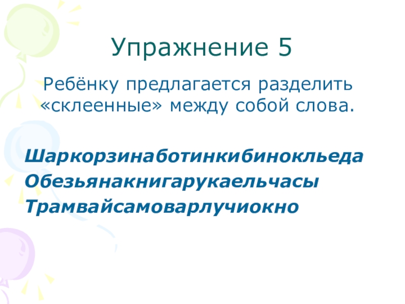 Ребёнку предлагается разделить «склеенные» между собой слова.