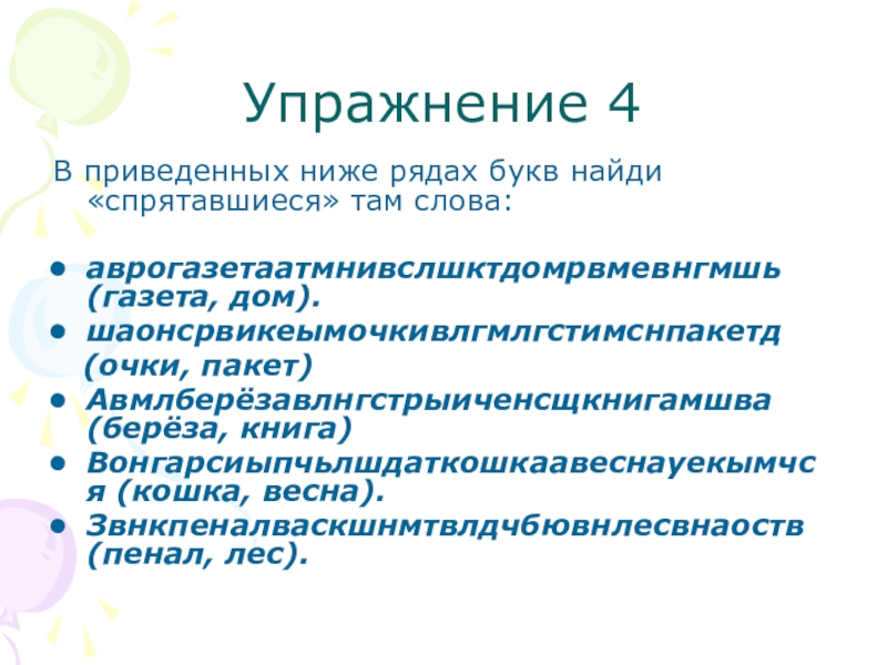 В приведенных ниже рядах букв найди «спрятавшиеся» там слова: