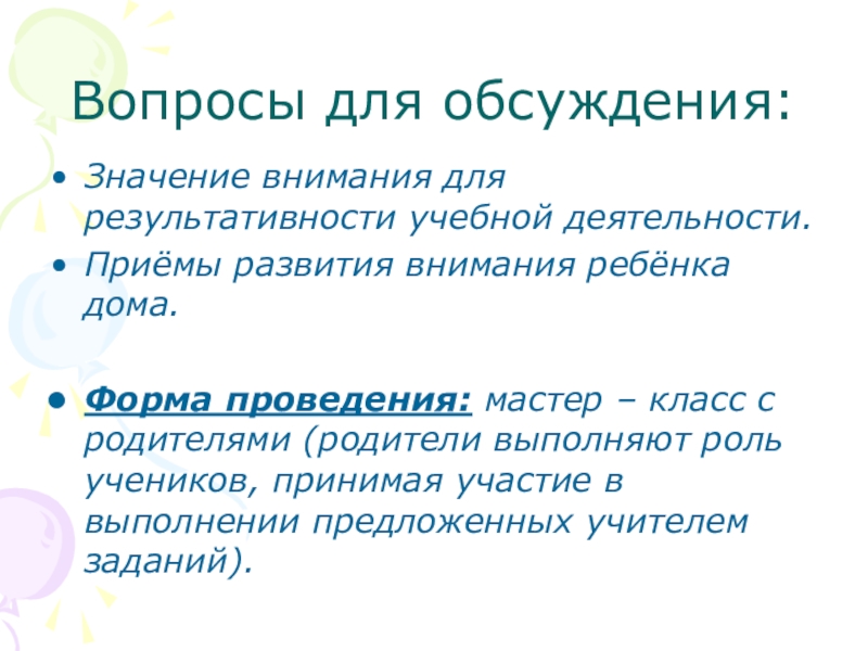 Показать родителям важность и значимость проблемы развития детского внимания.