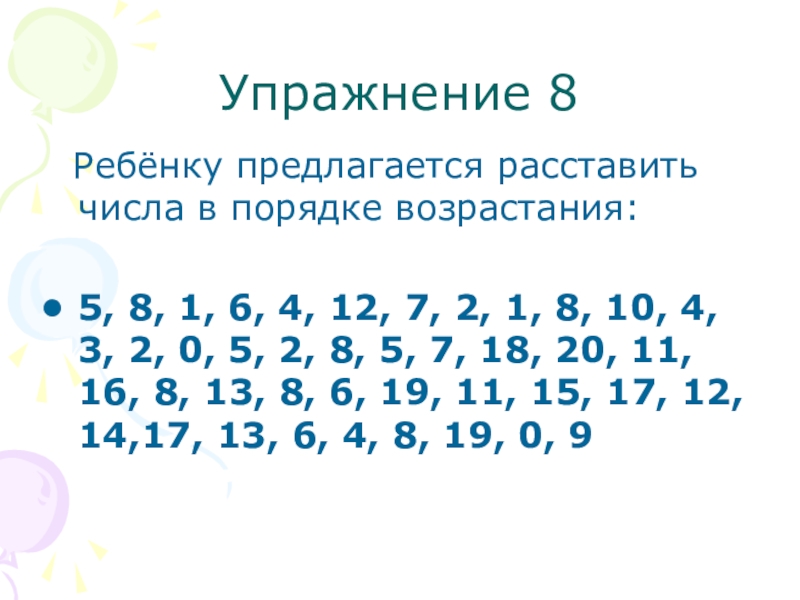 Ребёнку предлагается расставить числа в порядке возрастания: