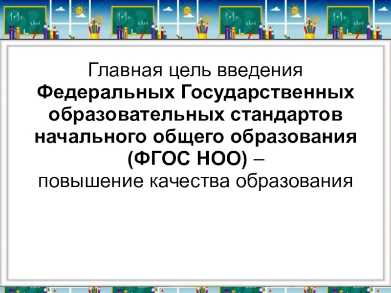 Главная цель введения Федеральных Государственных образовательных стандартов начального общего образования (ФГОС НОО) – повышение качества образования