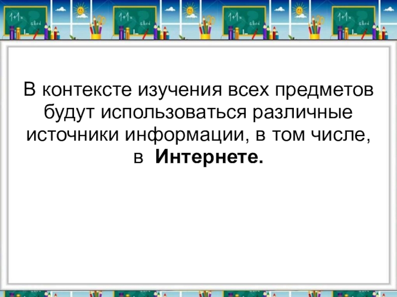 В контексте изучения всех предметов будут использоваться различные источники информации, в том числе, в Интернете.