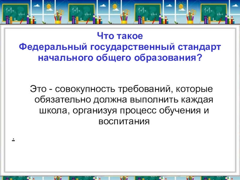 Слайд 3Что такое Федеральный государственный стандарт начального общего образования?