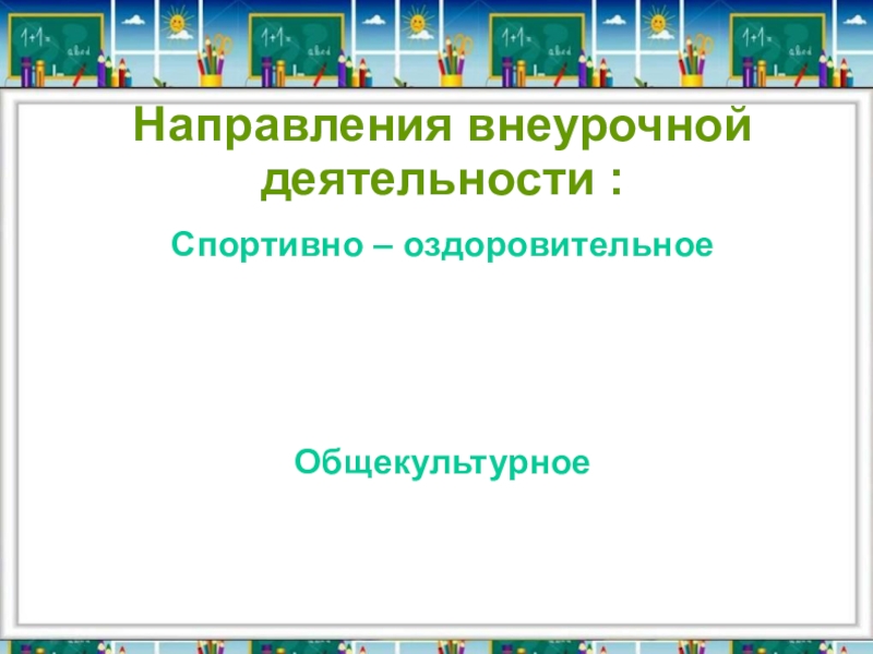 Направления внеурочной деятельности :Спортивно – оздоровительноеОбщекультурное