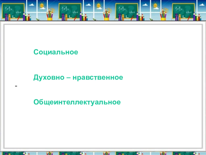 Слайд 14 Социальное Духовно – нравственное - Общеинтеллектуальное