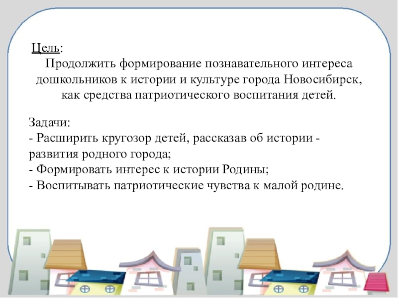 Продолжить формирование познавательного интереса дошкольников к истории и культуре города Новосибирск, как средства