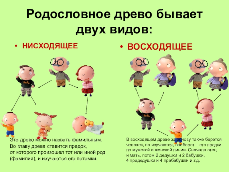 В восходящем древе за основу также берется человек, но изучаются, наоборот – его предки по мужской и женской линии. Сначала отец