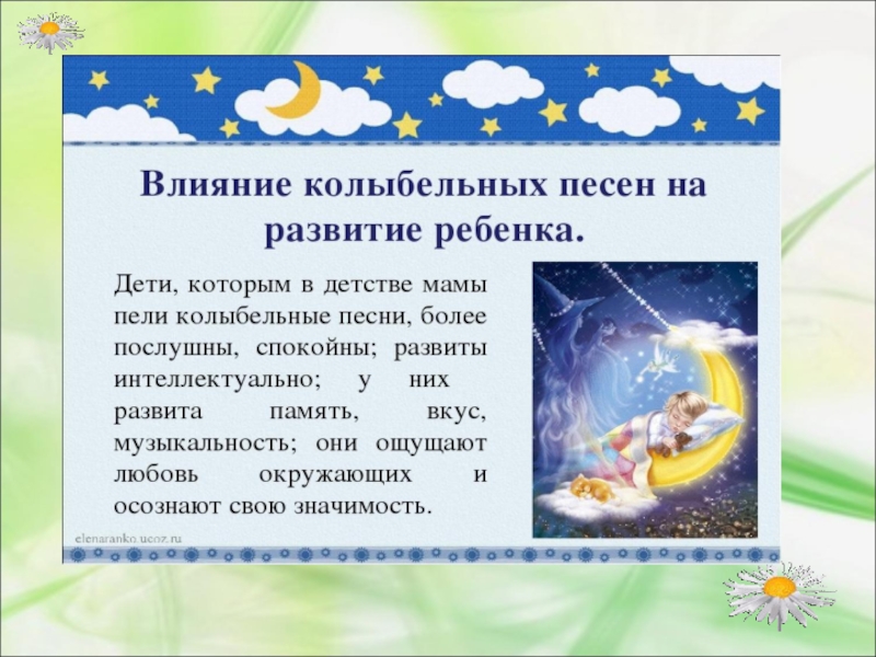 . Колыбельные песни обогащают словарь детей за счет того, что