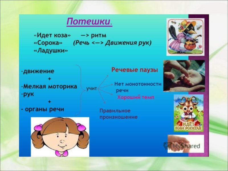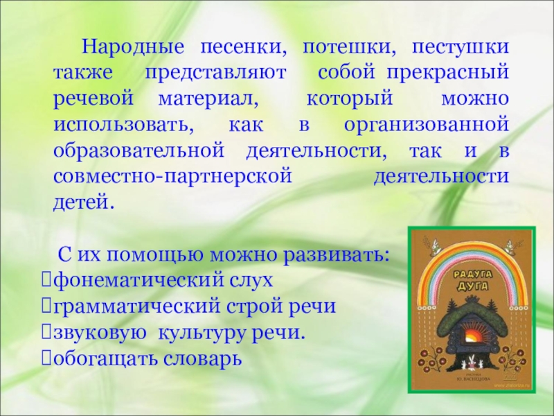 Слайд 7 Народные песенки, потешки, пестушки также представляют собой прекрасный