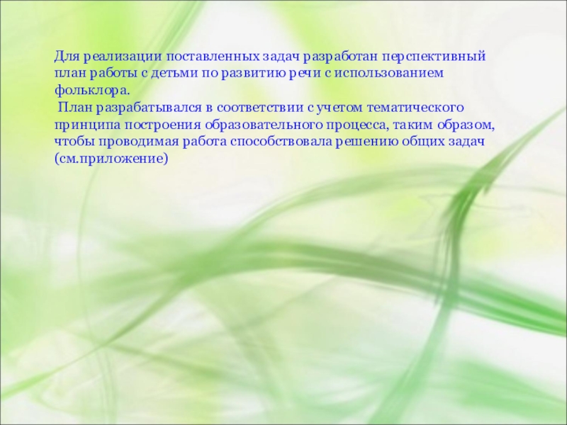 Слайд 20Для реализации поставленных задач разработан перспективный план работы с детьми по
