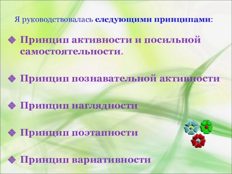 План разрабатывался в соответствии с учетом тематического принципа построения образовательного процесса, таким образом, чтобы проводимая работа способствовала решению общих задач (см.приложение)