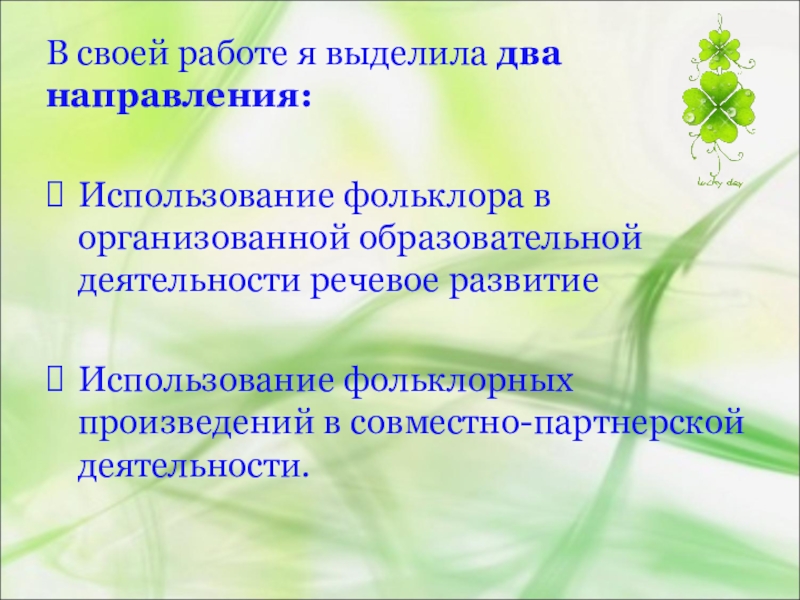 Использование фольклорных произведений в совместно-партнерской деятельности.