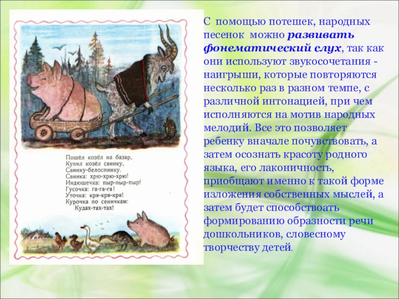 Слайд 14С помощью потешек, народных песенок можно развивать фонематический слух, так как
