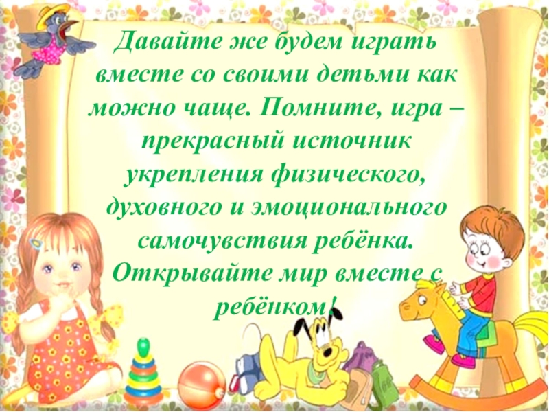 Слайд 16Давайте же будем играть вместе со своими детьми как можно чаще.