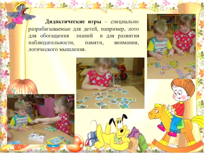 Слайд 7 Дидактические игры – специально разрабатываемые для детей, например, лото