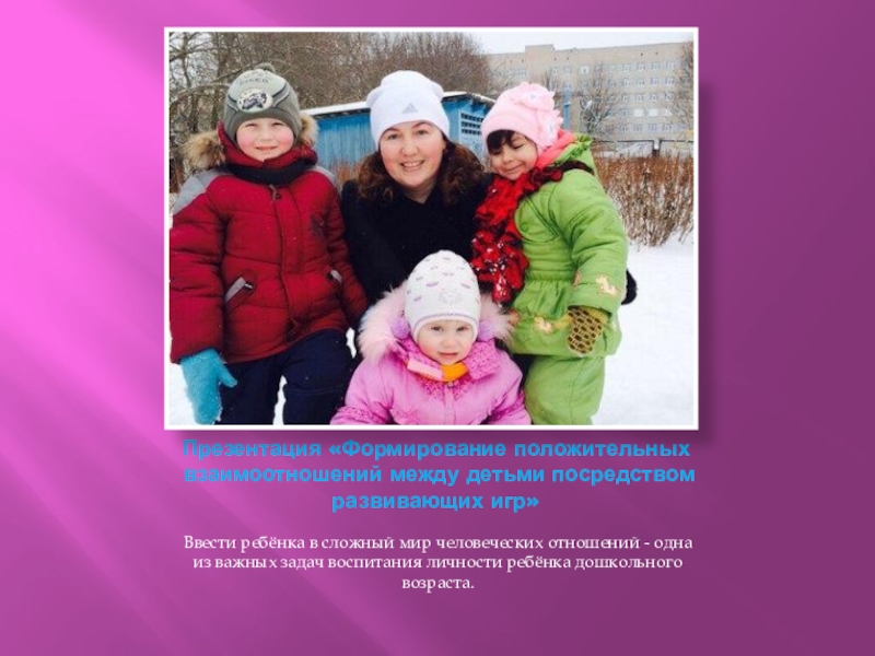 сложный мир человеческих отношений - одна из важных задач воспитания личности ребёнка дошкольного возраста.