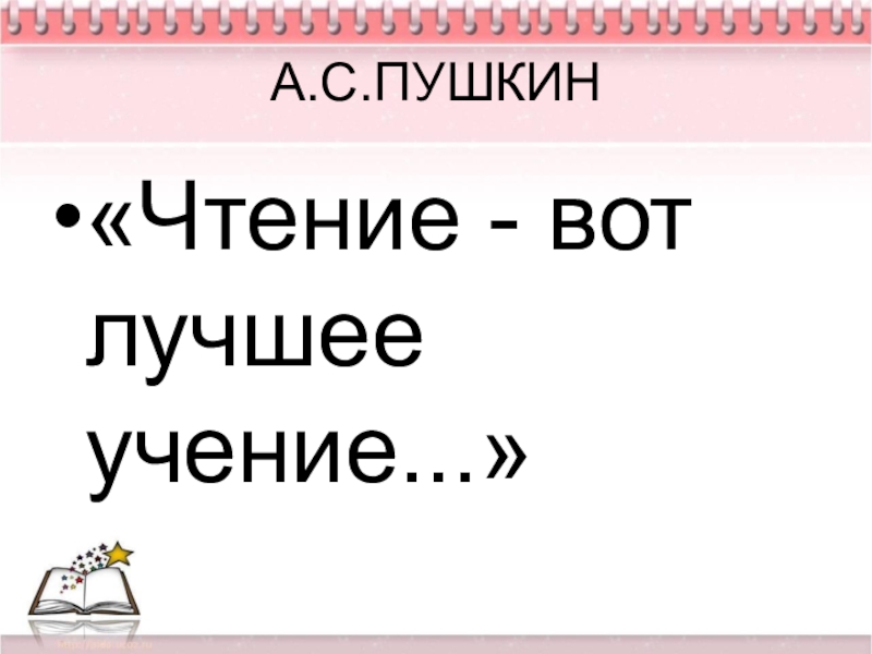 А.С.ПУШКИН«Чтение - вот лучшее учение...»