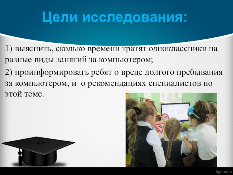 2) проинформировать ребят о вреде долгого пребывания за компьютером, и о рекомендациях специалистов по этой теме.