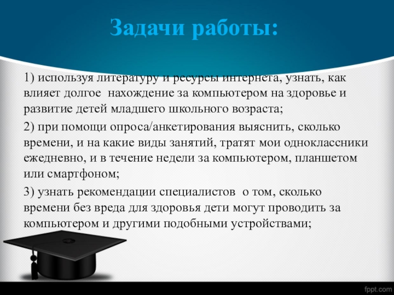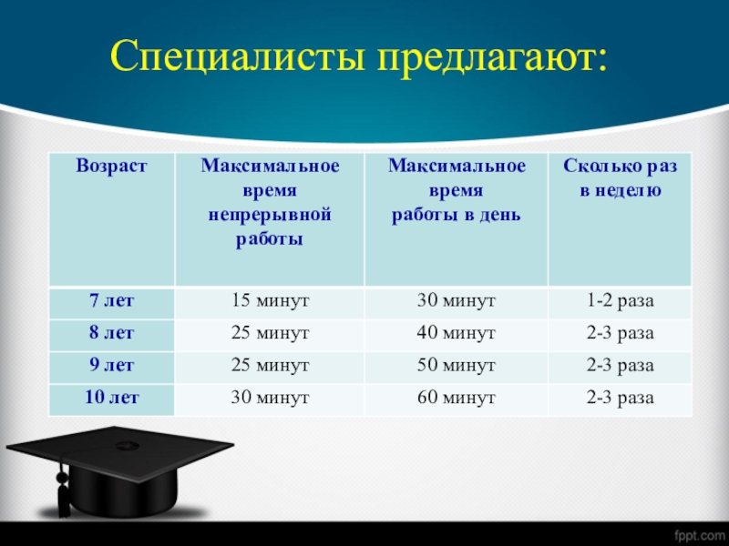 3) узнать рекомендации специалистов о том, сколько времени без вреда для здоровья дети могут проводить за компьютером и другими подобными устройствами;
