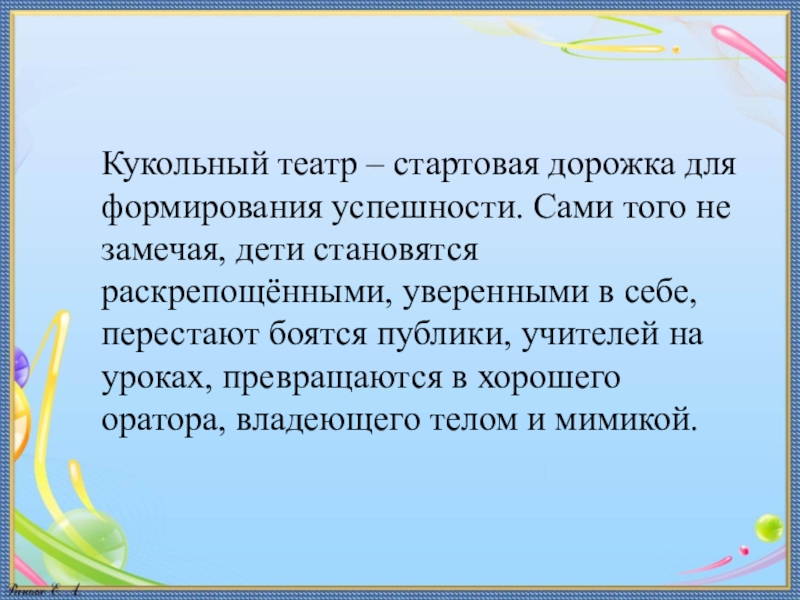 Слайд 22Кукольный театр – стартовая дорожка для формирования успешности. Сами того не