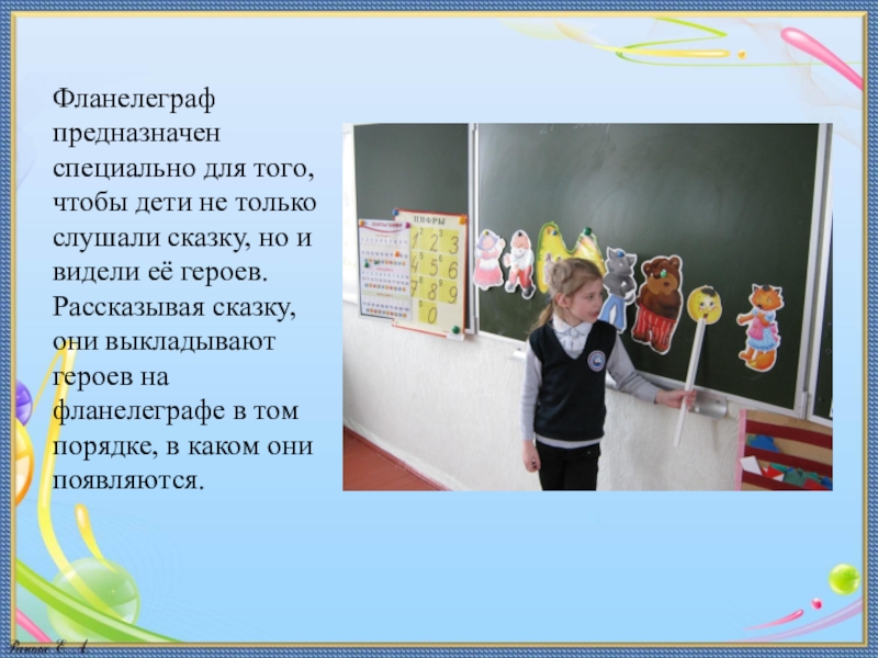но и видели её героев. Рассказывая сказку, они выкладывают героев на фланелеграфе в том порядке, в каком они появляются.