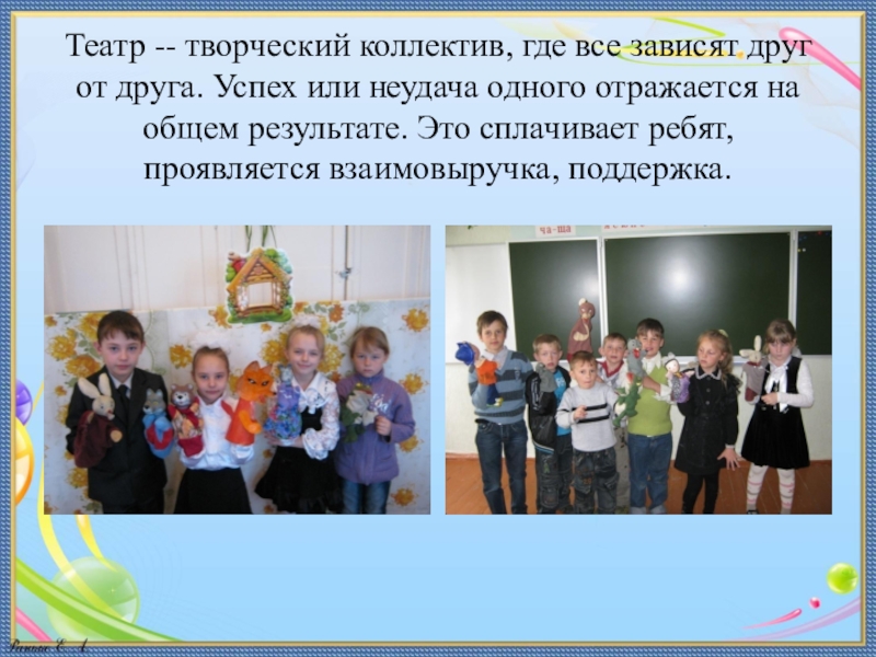 Слайд 20Театр -- творческий коллектив, где все зависят друг от друга. Успех