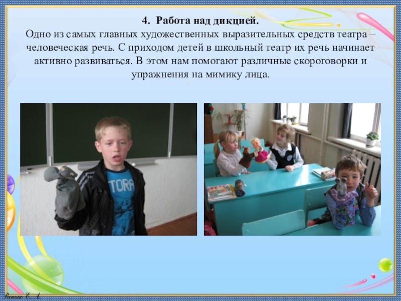 – человеческая речь. С приходом детей в школьный театр их речь начинает активно развиваться. В этом нам помогают различные скороговорки и упражнения на мимику лица.