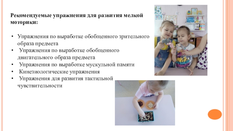 Слайд 9Рекомендуемые упражнения для развития мелкой моторики: