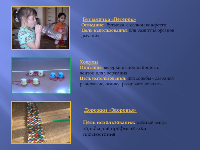 Цель использования: разные виды ходьбы для профилактики плоскостопия