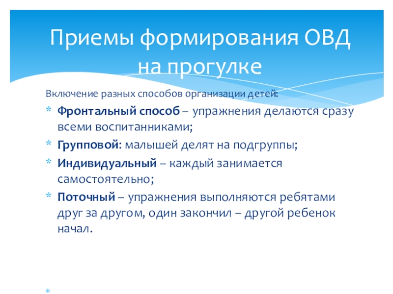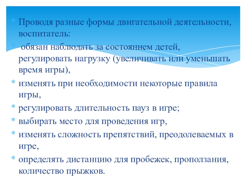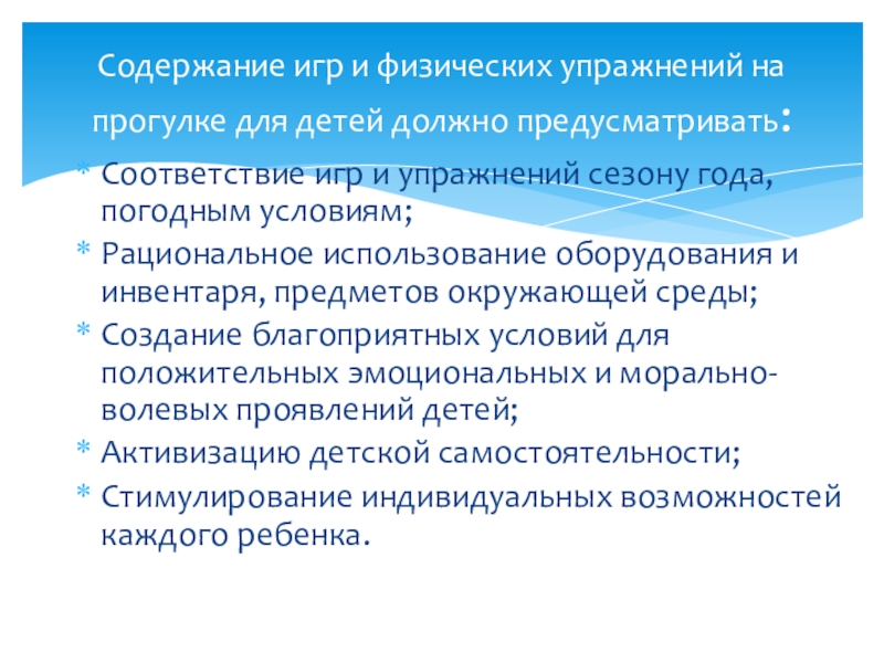 Содержание игр и физических упражнений на прогулке для детей должно предусматривать: