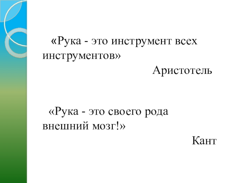 Слайд 3  «Рука - это инструмент всех инструментов»