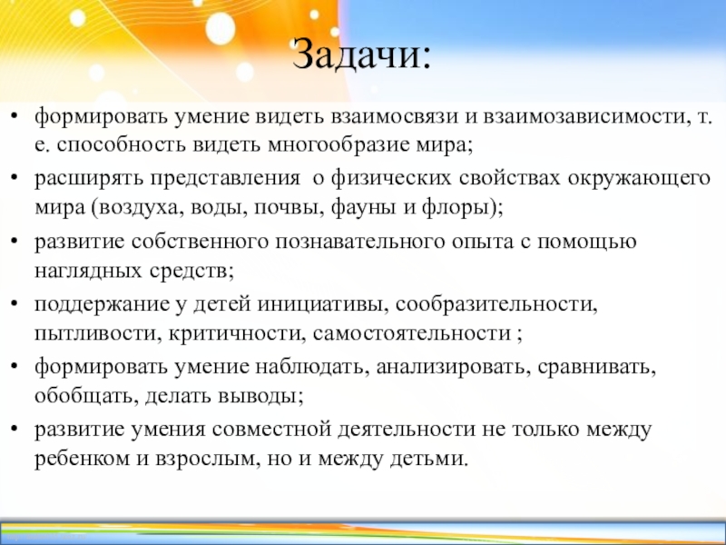 формировать умение видеть взаимосвязи и взаимозависимости, т.е. способность видеть многообразие мира;