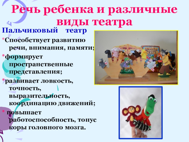 Слайд 13Речь ребенка и различные виды театра