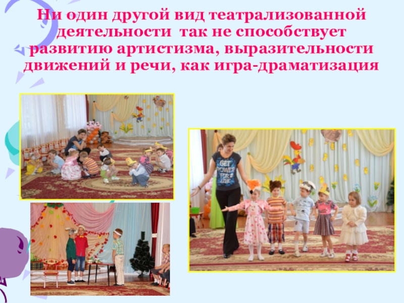 Слайд 24Ни один другой вид театрализованной деятельности так не способствует развитию артистизма,