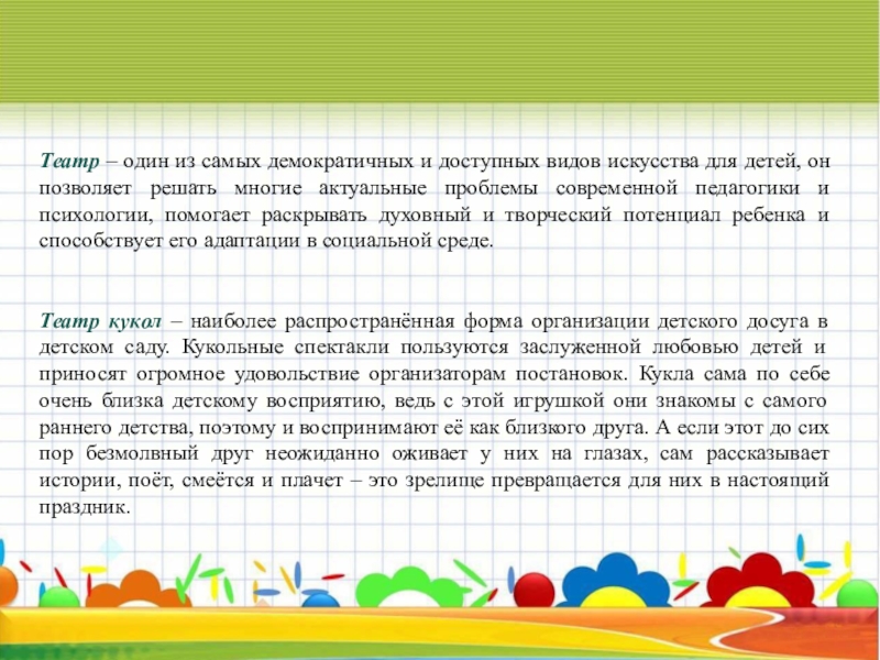 Слайд 3Театр – один из самых демократичных и доступных видов искусства для