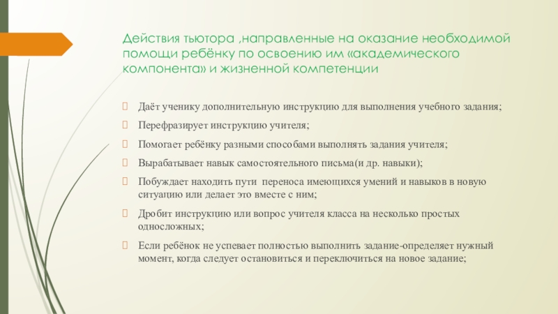 Дробит инструкцию или вопрос учителя класса на несколько простых односложных;