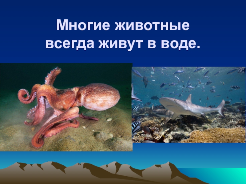 Слайд 8Многие животные всегда живут в воде.