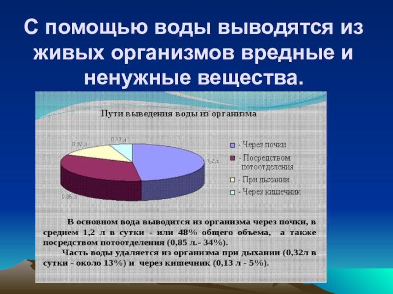 Слайд 7С помощью воды выводятся из живых организмов вредные и ненужные вещества.
