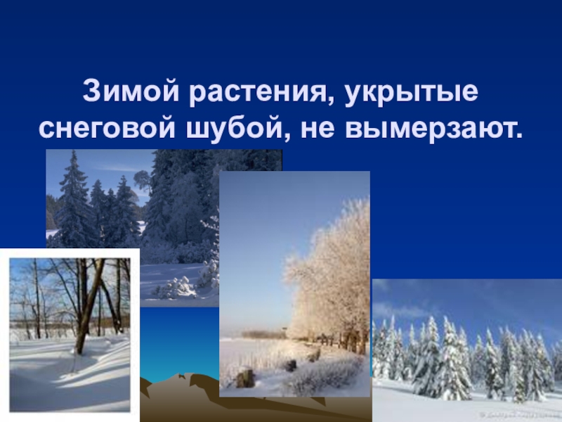Слайд 10Зимой растения, укрытые снеговой шубой, не вымерзают.