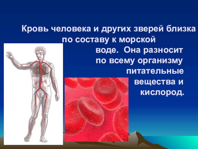 Слайд 3Кровь человека и других зверей близка по составу к морской