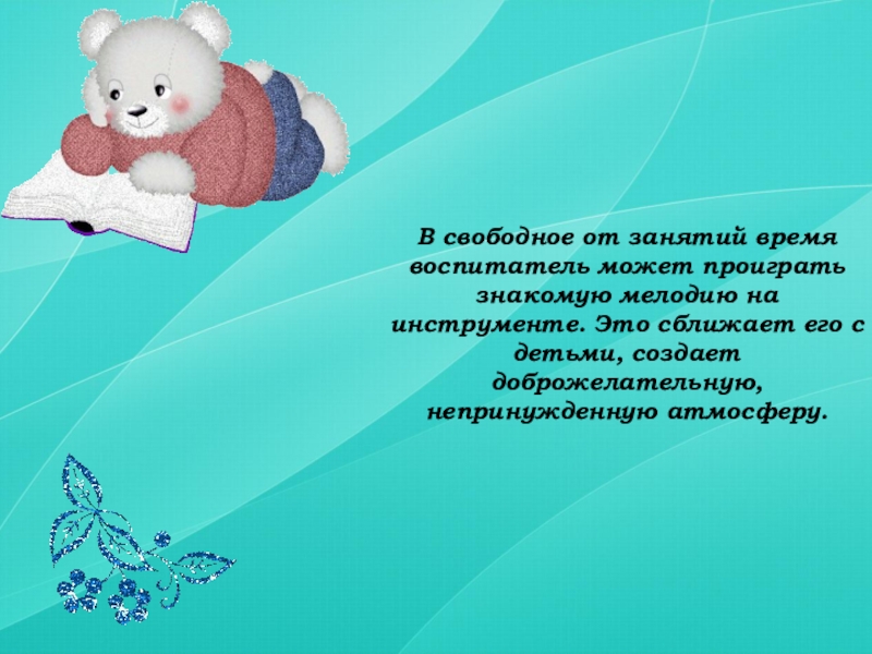 Слайд 7В свободное от занятий время воспитатель может проиграть знакомую мелодию на