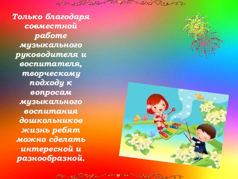 Слайд 11Только благодаря совместной работе музыкального руководителя и воспитателя, творческому подходу к