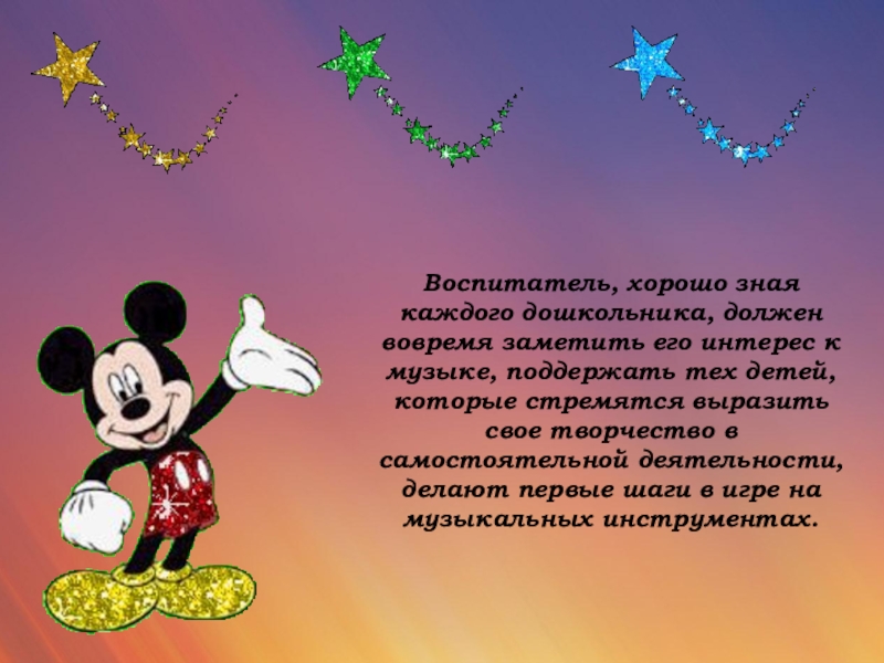 Слайд 9Воспитатель, хорошо зная каждого дошкольника, должен вовремя заметить его интерес к