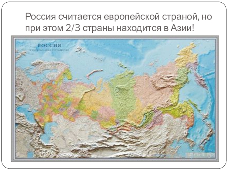 Слайд 9Россия считается европейской страной, но при этом 2/3 страны находится в
