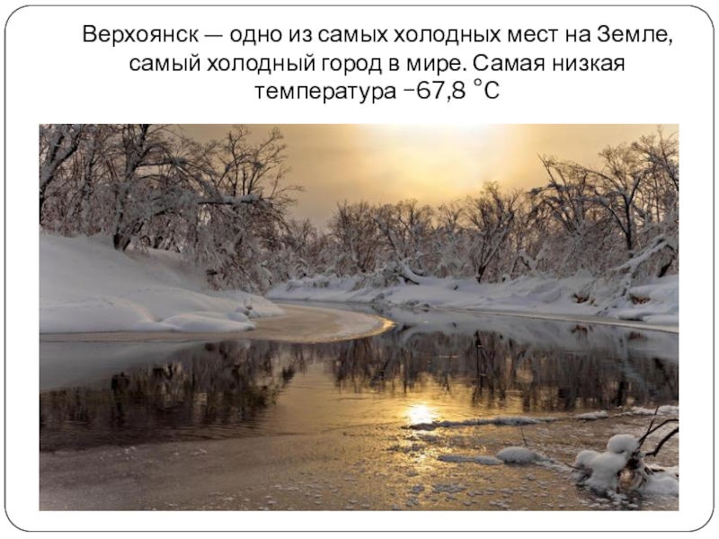 Слайд 15Верхоянск — одно из самых холодных мест на Земле, самый холодный город