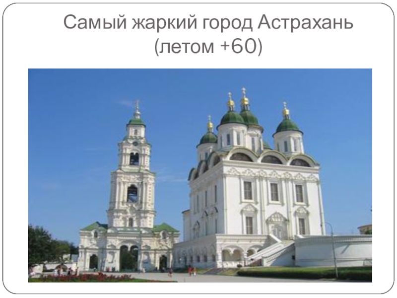 Слайд 14Самый жаркий город Астрахань (летом +60)