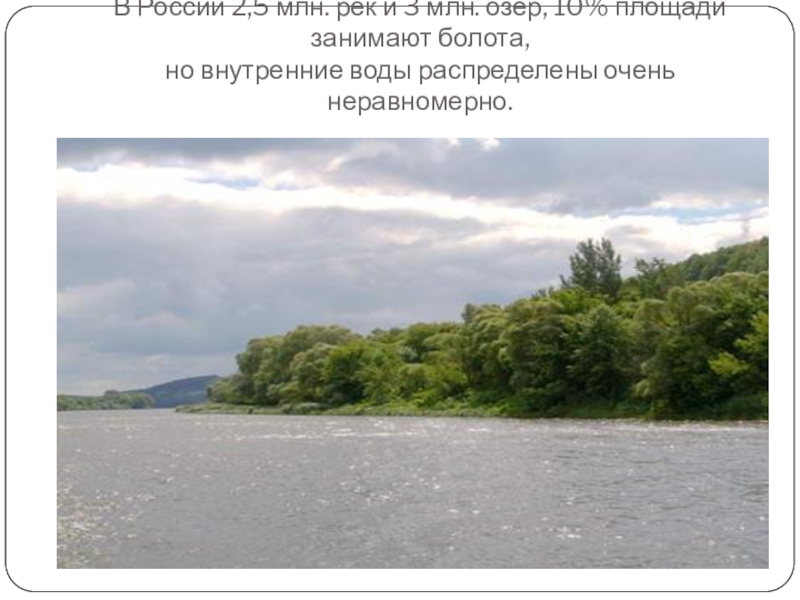 В России 2,5 млн. рек и 3 млн. озер, 10% площади занимают болота, но внутренние воды распределены