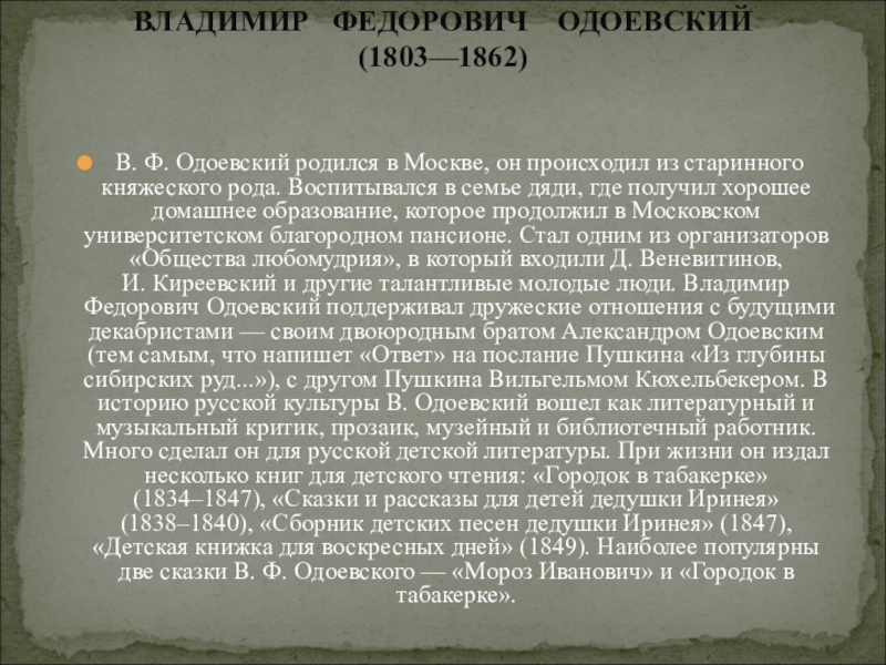 ВЛАДИМИР ФЕДОРОВИЧ ОДОЕВСКИЙ